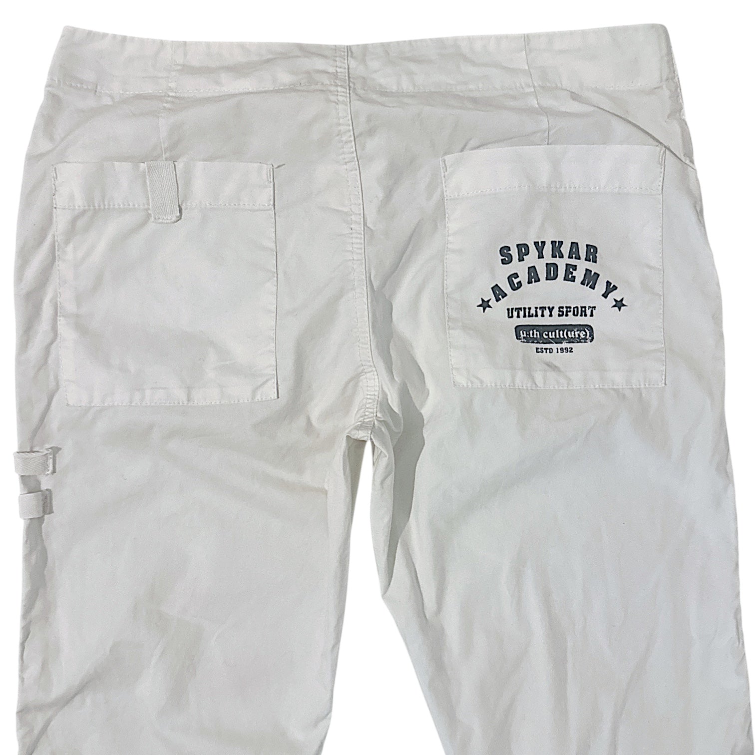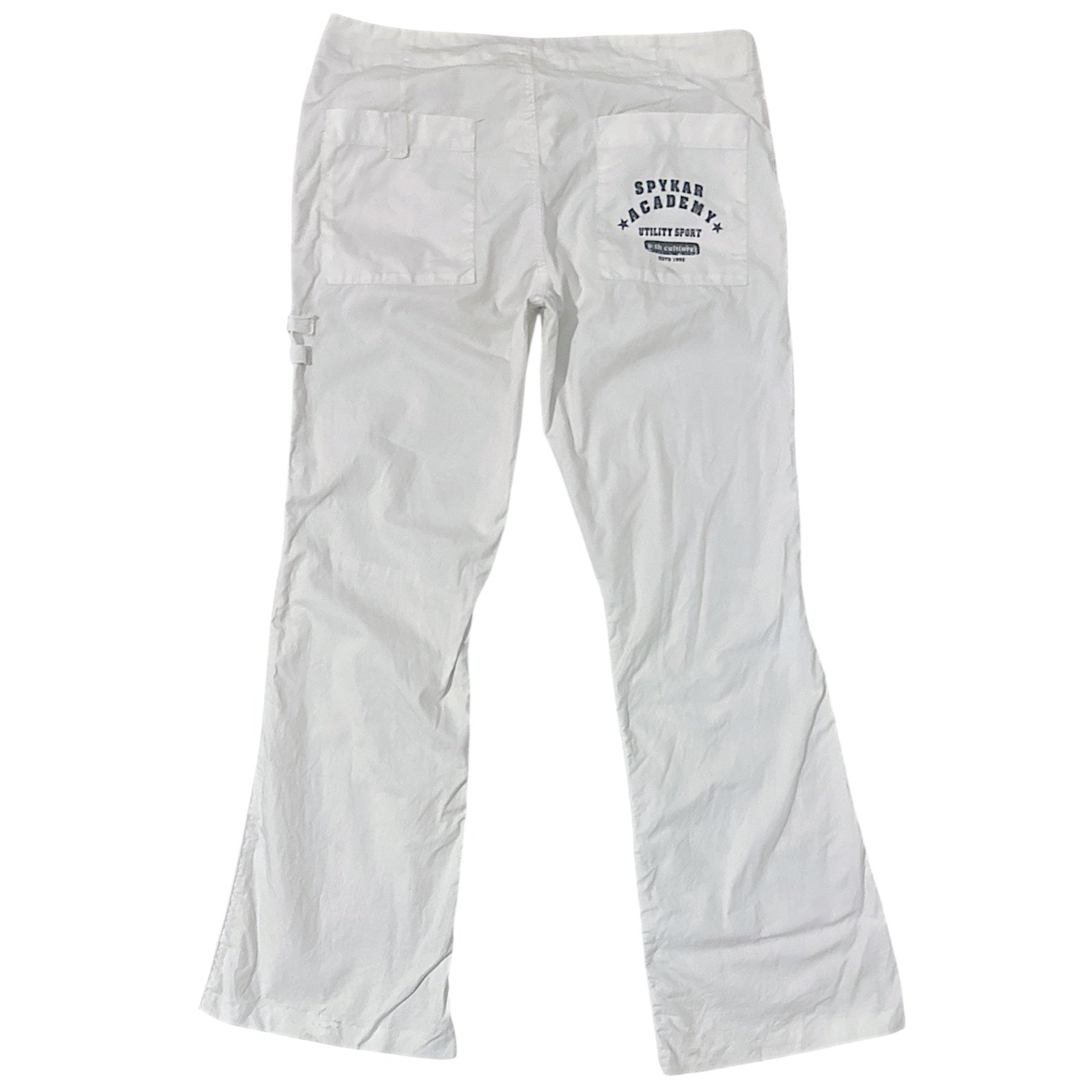 PANTALÓN DE PIERNA SEMI-OXFORD DE TIRO MEDIO CON BOLSILLOS CON DETALLE DE CINTAS EN FRENTE Y ESTAMPA EN COLA. CINTO INCORPORADO EN FRENTE. DETALLE DE COSTURA A MANO EN BAJO.
