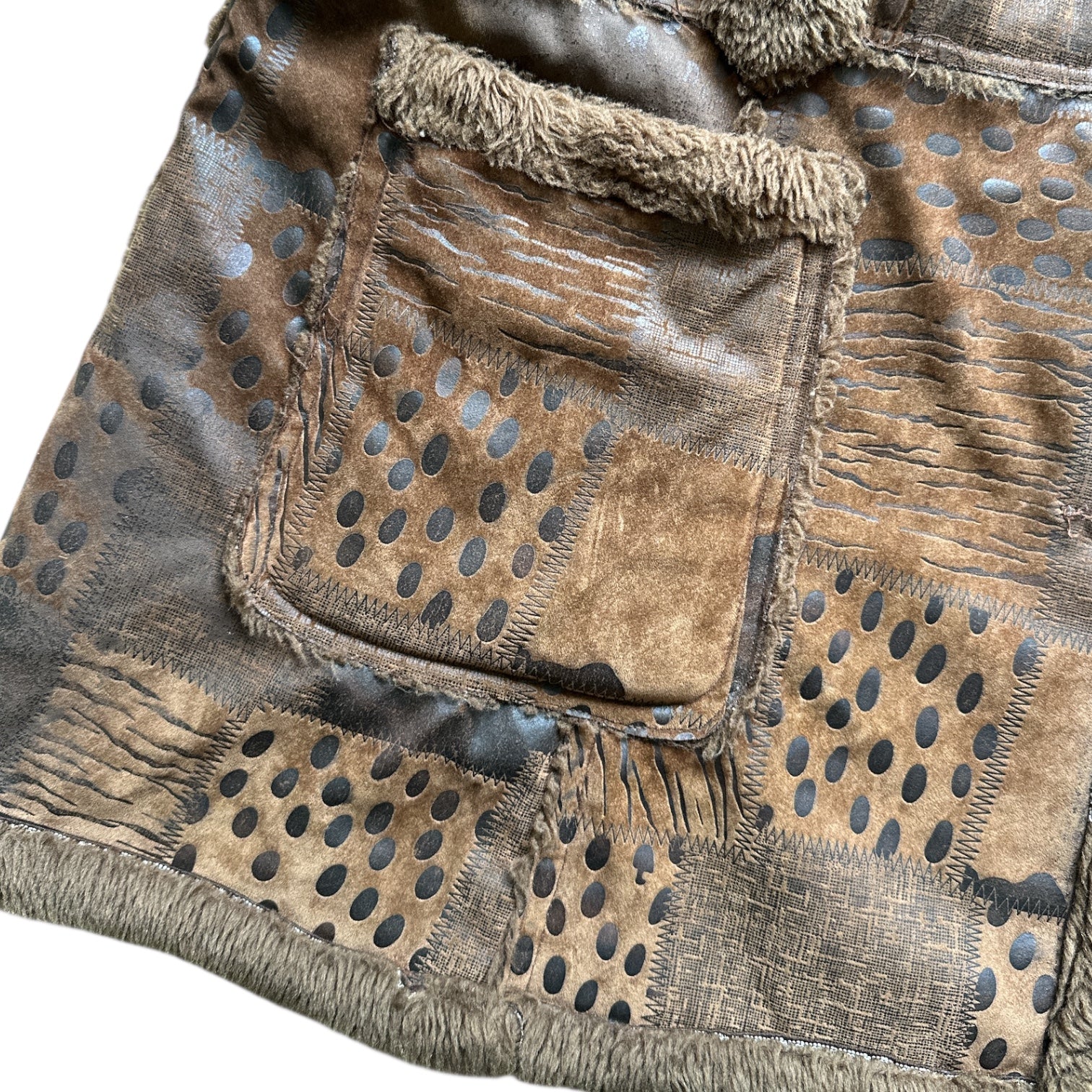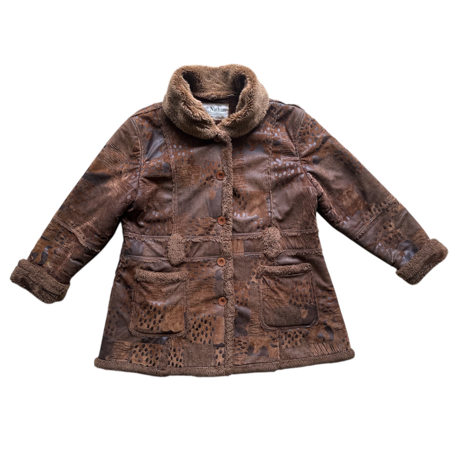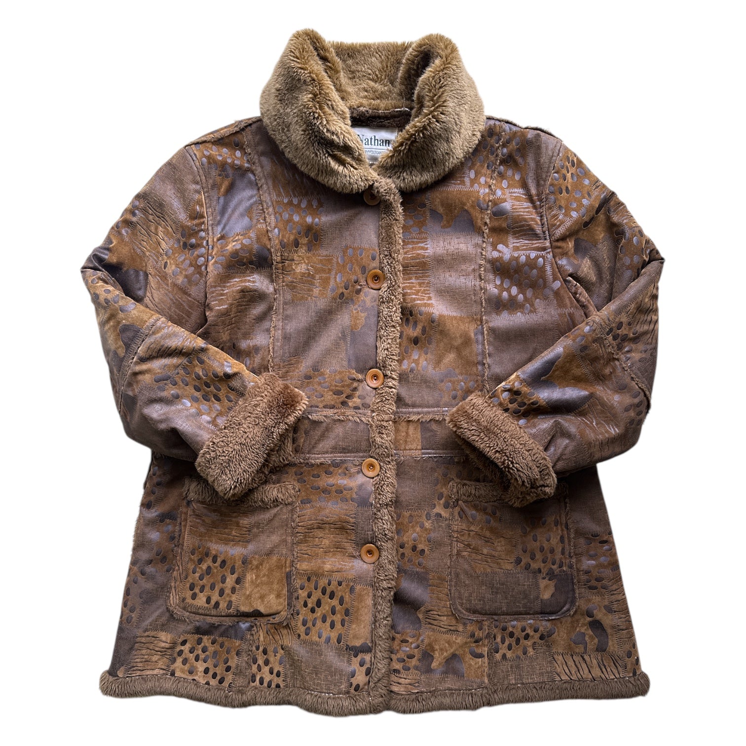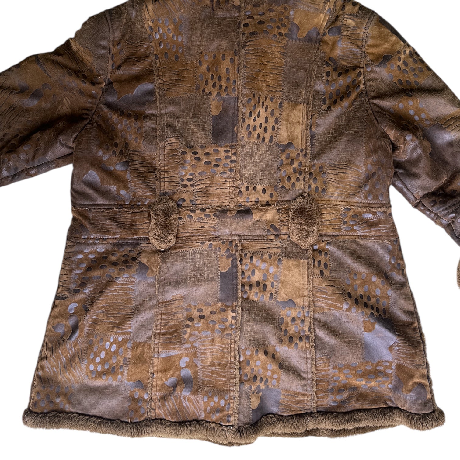 ABRIGO LIVINAO TIPO GAMULÁN SINTÉTICO EN POLIÉSTER CON EXTERIOR DE MOTIVO ANIMAL PRINT TIPO PATCHWORK.
